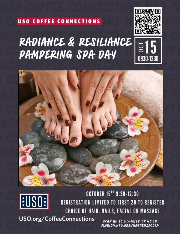 10/01/2025 UPDATE!! Only those 20 who have registered by 9/30/2025 are able to attend as this is a SOLD OUT event! Please email kandrade@uso.org by 10/03/2025 with your full name, phone number, preferred check in time and the (1) selection you are choosing: facial, hair, acrylic manicure or massage! You will need to check in 15 minutes prior to your appointment time and MUST text or email if you need to cancel last-minute by contacting Kathy (850)860-6645.