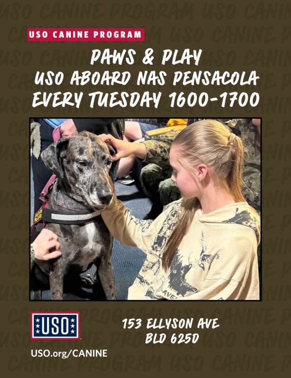 Come hang out with the canines! Tiana, Willow, Jax, Milly, Heidi, Panda, and Dottie are always happy to see our military service members and their families! New start time 4 pm to 5 pm at NAS Pensacola!
