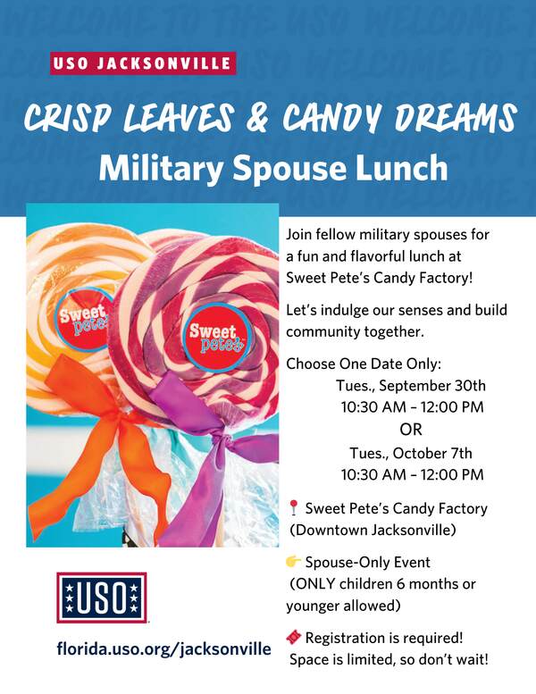Join fellow military spouses for a fun and flavorful lunch at Sweet Pete’s Candy Factory!